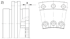- L-形圈的擴(kuò)孔螺栓對(duì)著軸承孔,見圖 2.) 軸承內(nèi)徑在 X 區(qū)域沒有支撐。